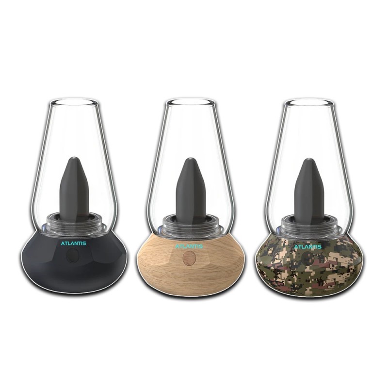 Durable and portable, the operation of the Atlantis is very easy. Powered by an internal 1600mAh battery, the Atlantis has an internal 510 thread connection for 510 cartridges. Tap the power button on the front 5x to power the device. Tapping 3x will allow you to select your desired voltage setting (yellow 2.5V, blue 3.0V, green 3.5V, red 4.0V). You can also enable the 30-second auto input feature by pressing the button 2x. Once your cup is full, simply pick up the glass, sip the vapor, and enjoy.