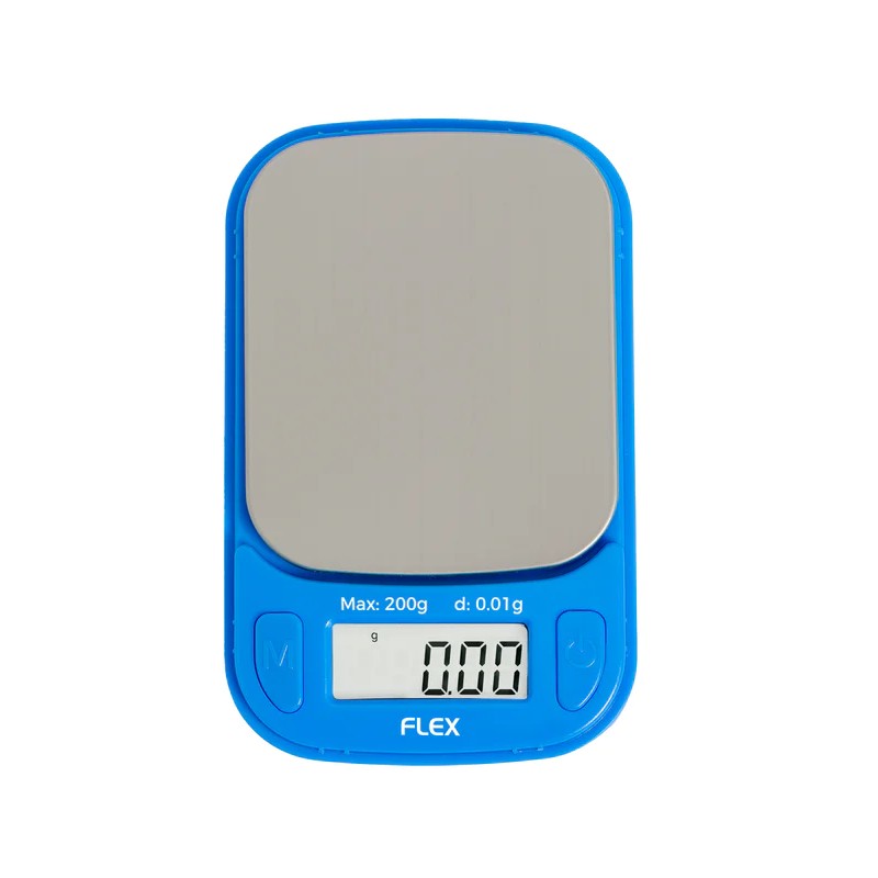 The Truweigh Flex Mini Scale is a pocket-sized digital scale for weighing personal amounts of . It’s rectangular with rounded edges and a lid that can be used as an additional weighing tray. It can weigh up to 200g and measures to 0.01g. It features a stainless steel platform and a white LCD screen that can be read in the dark. The fast processor measures quickly and accurately.